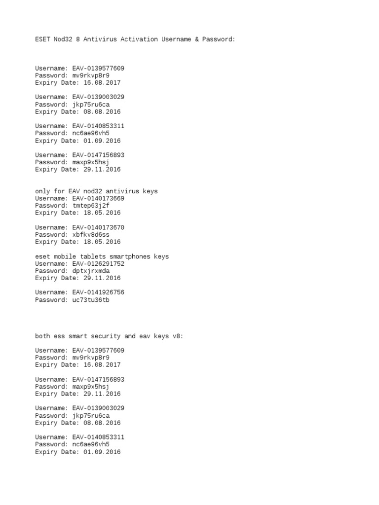 Eset nod32 antivirus 11 key serial username and password ... 10 11 10 August 2013 Eset nod32 Antivirüs 11 11 and 11 key keys claves clave llave llaves 10 11 10 Augustıs 2013 Güncel Eset nod32 Keyler Actual Current Eset Key, Serial. Güncel eset keylerini hergün blogumda sizlerle paylaşarak key arama sıkıntılarını çözebileceğimi düşündüm.