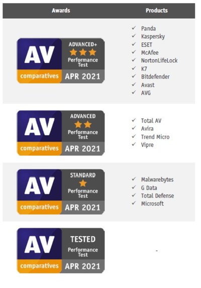 Performance Test April 2018 - AV-Comparatives Performance Test April 2018 for Microsoft Windows 10 security products released, 18 products' impact on system performance was tested. This test includes both "Antivirus" and "Internet Security" consumer products - both referred to as security products. We have tested the product that each...