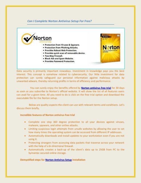› products › cyber-securitySymantec Cyber Security - Broadcom Inc. To meet today's Cyber Security challenges, enterprises need an integrated cyber defense platform that integrates industry-leading solutions and solves for the most pressing C-level challenges like evolving threats, privacy & compliance, and digital transformation. Download Symantec Norton Antivirus 2012 90 Days Free Trial Version Symantec's Norton Antivirus 2012 Program is popularly known for Proactive security, for both Internet threats and PC threats of viruses. Norton AntiVirus 2012 Free 90 day Download version is absolutely free with activation code.