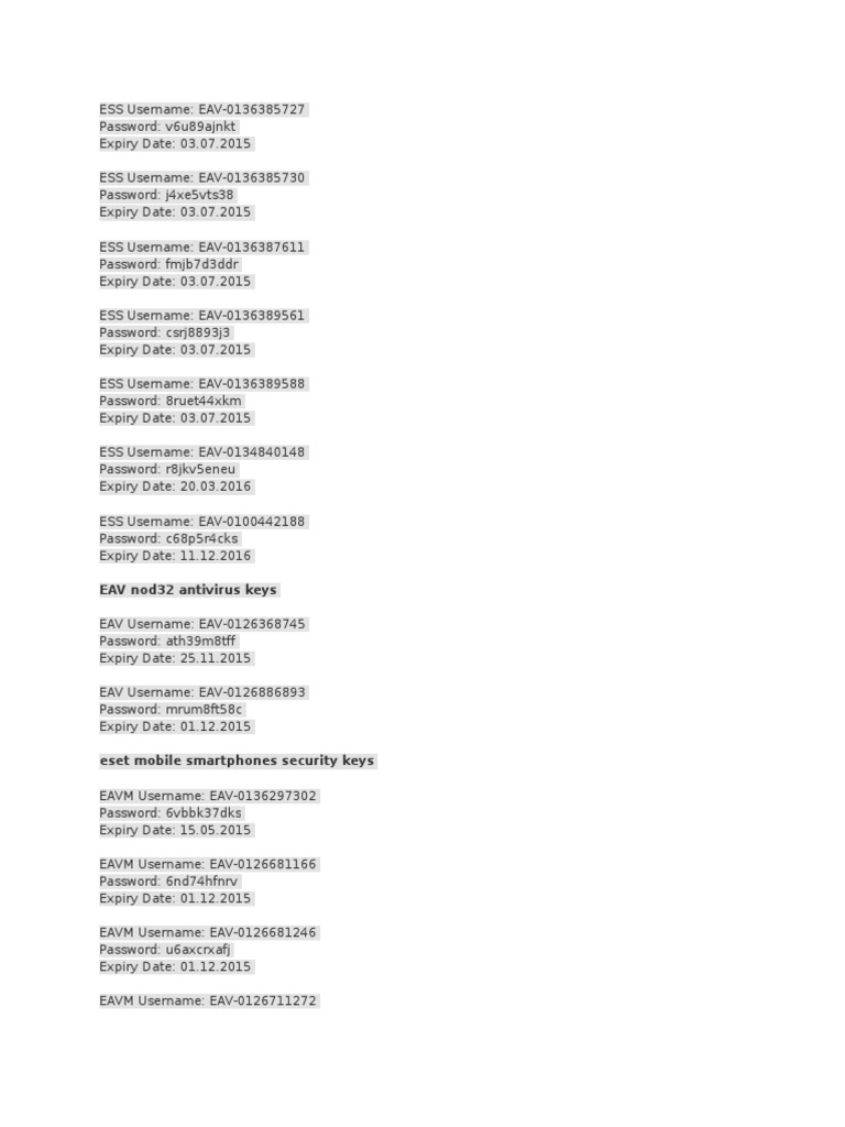 Eset nod32 antivirus 4 username and password 2016. Invalid Username and/or Password - ESET NOD32 Antivirus ... Good day all! I recently installed Linux Mint 19.3 on my laptop, and have now installed ESET NOD32 Antivirus 4. The installation appears to have gone well enough. However, the program is telling me that I have provided it an "Invalid Username and/or Password." In looking at the original e-mail from ESET, I am sure that both entries are correct. Eset Nod32 Username and Password | Free usernames and ... Apr 04, 2016 · Eset Nod32 Antivirus 8. Eset Nod32 Antivirus 8. Download here. ... Expiry date: 15-09-2016 Username: EAV-0140027453 Password: sbmde8kucj. EAV Username: EAV-0140173669 ESET NOD32 Username and Password | Smart Security 4 Serial ... Oct 12, 2011 · Password: va427r743f. Expiration: 19/10/2011. Username: EAV-39587174. Password: f6b42dfxsp. Expiration: 19/10/2011. Username: EAV-48894407. Password: 36pcuuvnjs. Expiration: 17/12/2016. Username: EAV-50866469. Eset NOD32 ess keys username and password ... - Pastebin Eset NOD32 ess keys username and password serial 9/8 from 1 septembert 2016, health for your pc and relax for your reckless mind, license activation keys for antivirus eset smart mobile security 2017/2018 pc and mobile phones pefel.net