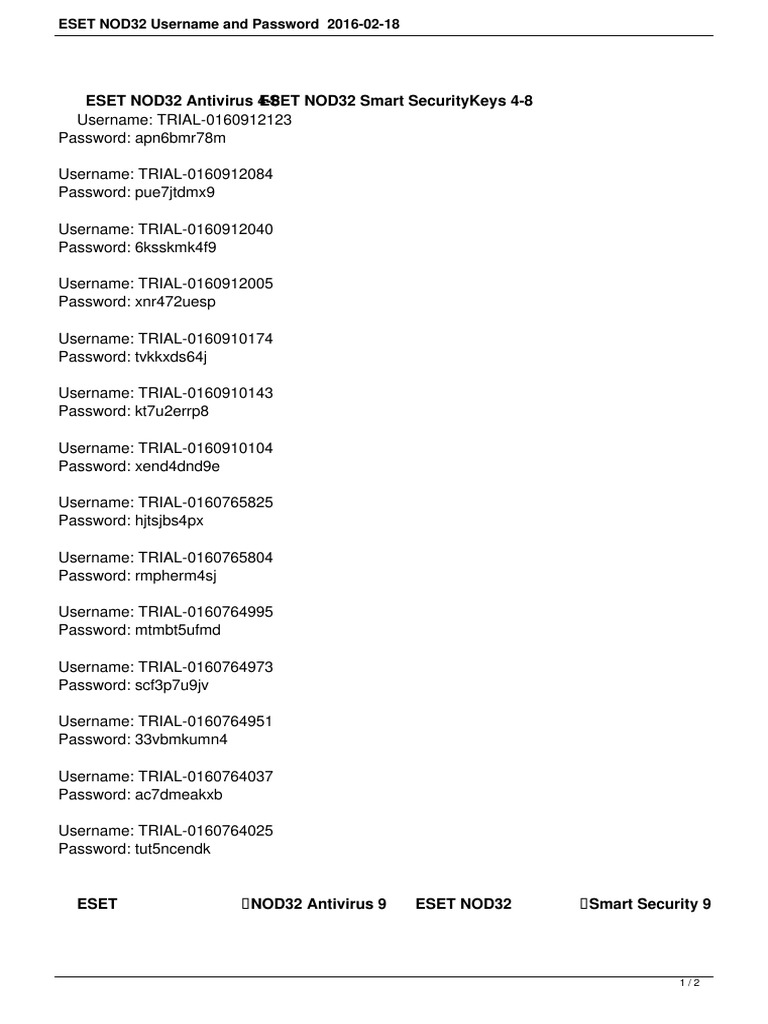 Eset Nod32 Antivirus 4 Username And Password 2017 - renewextra Eset nod32 Username Password, Eset nod32 Username Password 2016, Eset nod32 Username Password 2017 Eset nod32 username and password 2016 free trials are always up to date. This anti virus works well with the entire system I have and havent received any virus for 10 years.