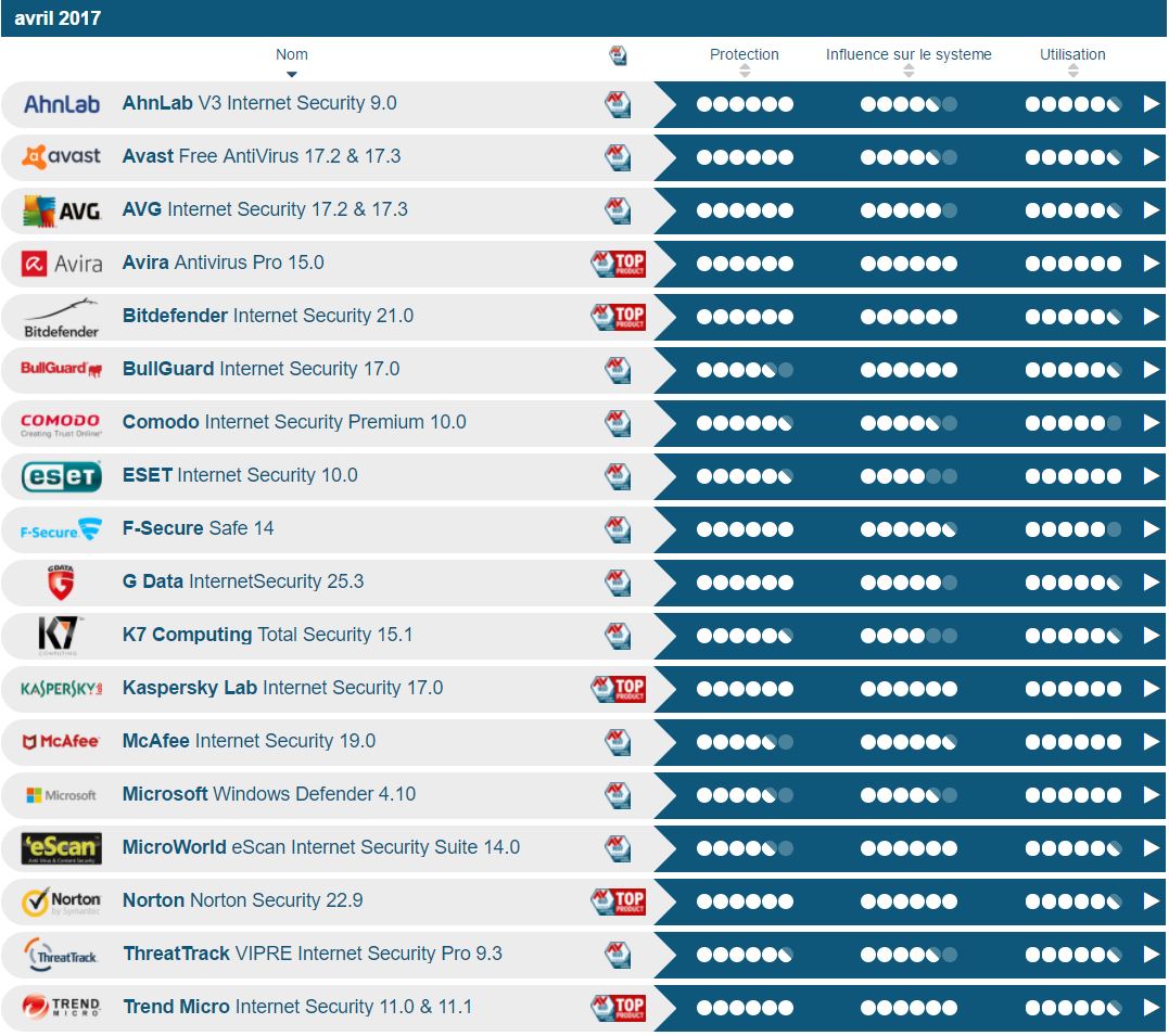 Quel Est Le Meilleur Antivirus En 2022 Dans l'industrie de la cybersécurité, un organisme publie tous les ans un classement avec les meilleurs antivirus : AV-Comparatives. En 2018, 2019, 2020 et 2022, c'est Bitdefender qui s'est positionné sur la plus haute marche du podium. Sa suite Total Security permet de protéger par défaut 5 appareils en parallèle. Les 5 meilleurs logiciels antivirus (VRAIMENT GRATUITS ... Avira Free Security pour Windows est mon antivirus pour Windows gratuit préféré en 2021. Il a l'un des meilleurs systèmes anti-malware du marché, inclut plus de fonctionnalités gratuites que ses concurrents, et il est en plus facile à utiliser et intuitif. Nos suggestions des meilleurs antivirus et suites de ... Pourquoi ne pas opter pour un antivirus gratuit? Vous avez peut-être remarqué, mais toutes les suites d'antivirus que je recommande sont des solutions payantes, alors qu'en est-il de celles qui sont gratuites? J'entends déjà les détenteurs de PC me parler de Windows Defender qui est intégré d'office à Windows 8, 8.1, 10 et 11. Meilleurs antivirus 2022 : quelle solution gratuite ... Bitdefender offre la protection la plus précise et la plus fiable qui soit et a reçu plusieurs prix. (Image credit: Future) 1. Bitdefender Antivirus. De nombreuses fonctionnalités pour une protection à toute épreuve : le meilleur antivirus de 2021. Caractéristiques techniques.