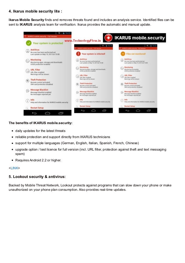20 Best Antivirus For Android To Ensure Your Mobile Security - UbuntuPIT Avira Antivirus Security is one of the best Antivirus for Android. It offers all the common protection features like protecting devices from malware, adware, spyware, find the lost phone, call blocking, protect private data, etc. Main Features Provides privacy-related materials like contacts, chat history, SMS, sensitive photos, etc. The Best Antivirus for Android in 2022 - Free and Paid Antivirus Avast — A Powerful Free Antivirus for Android Devices Avast is the best free Android antivirus on the market, with 4.7/5 stars on Google Play and over 100 million downloads. You can use...