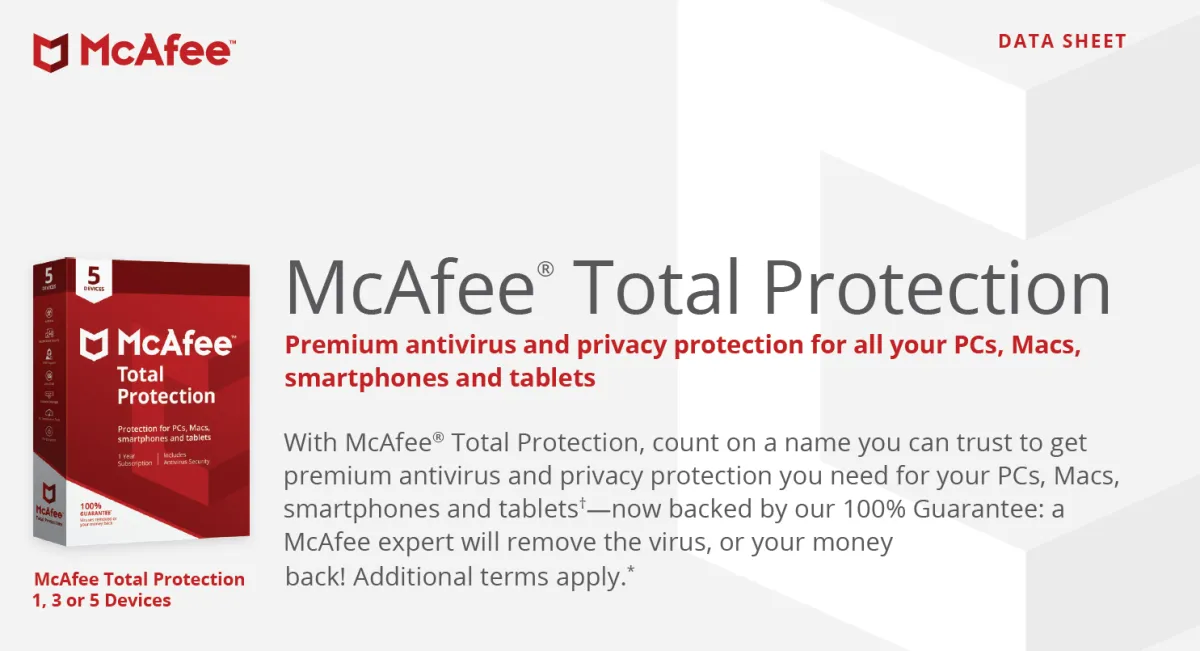 Free Antivirus Download | 100% Free and Easy Install | McAfee McAfee Total Protection is more than just award-winning antivirus or malware removal, with additional features like VPN and Identity monitoring to protect your privacy and identity while you're browsing online. All the confidence you need You do you and we'll protect the rest with our purchase and protection guarantees.
